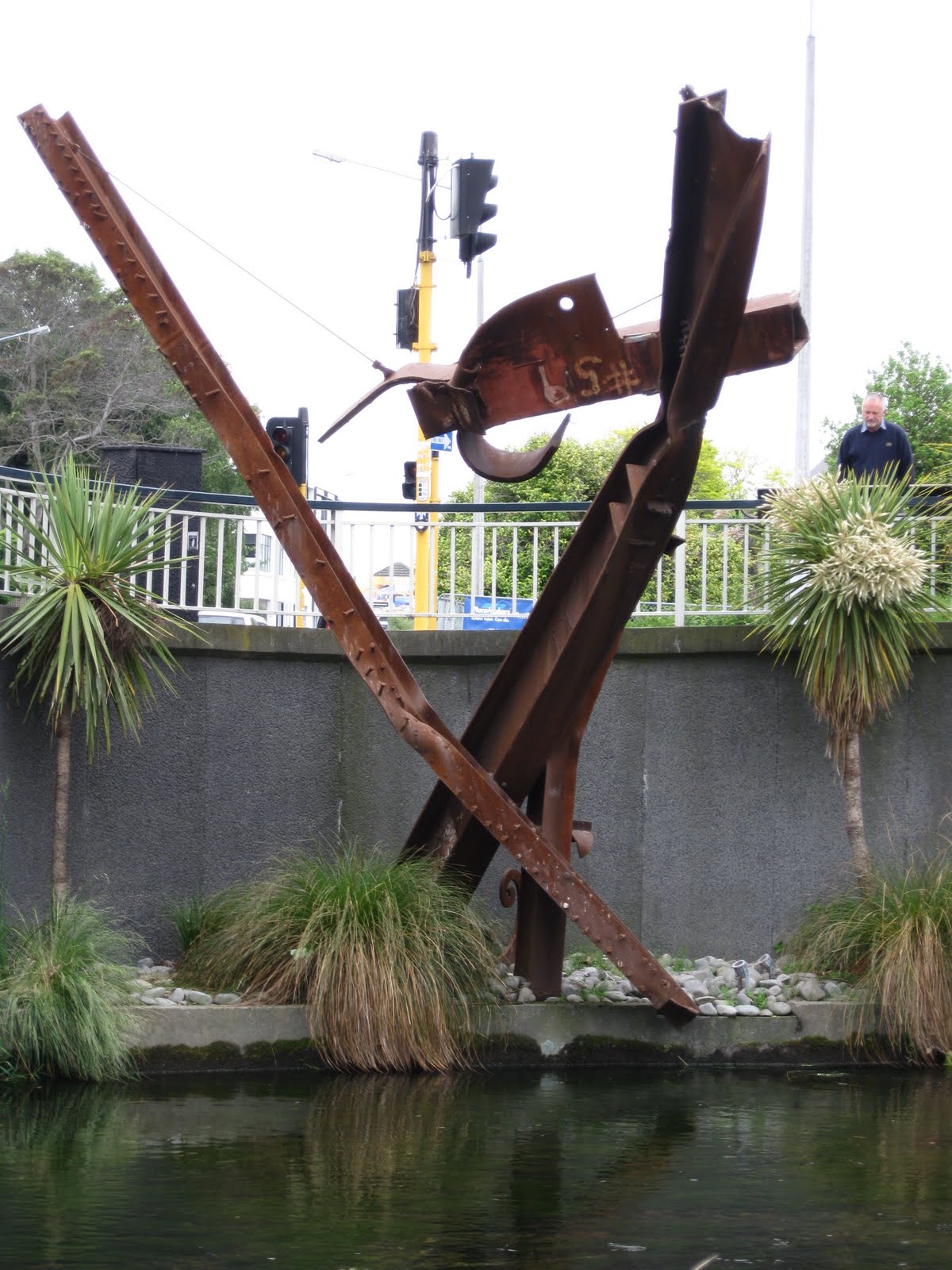 On the way back into Christchurch, we stopped to see the Firefighters' Memorial. The steel for this sculpture was a gift from the city of New York and came from World Trade Tower II. Many firefighters from New Zealand went to New York to assist in the search/clean up after 9/11. This monument honors firefighters the world over.